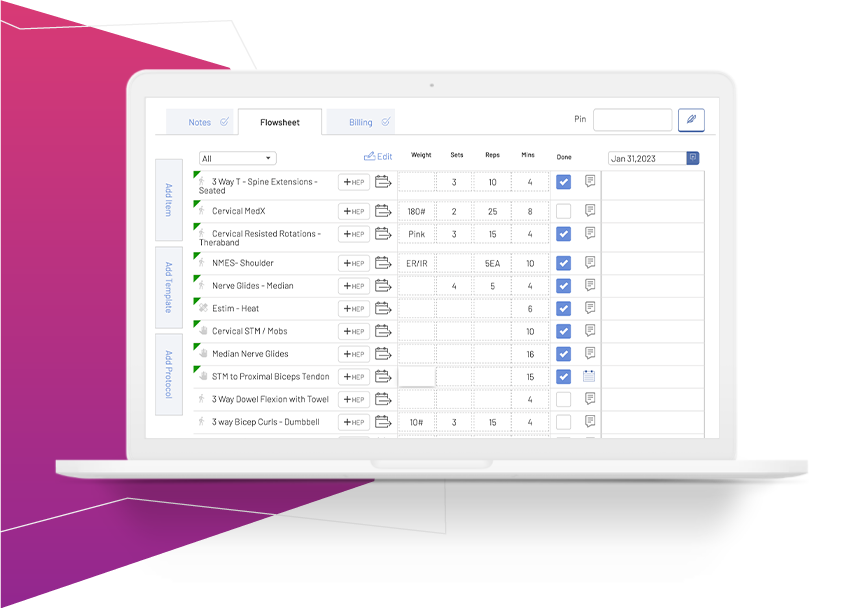 No more documenting through lunch, outside treatment hours, or at home. Simplified workflows paired with custom note templates and protocols result in less typing, reduced scrolling, and fewer clicks. Evaluation notes take 75% less time to complete than the industry norm while a SOAP note can be completed in half the time.